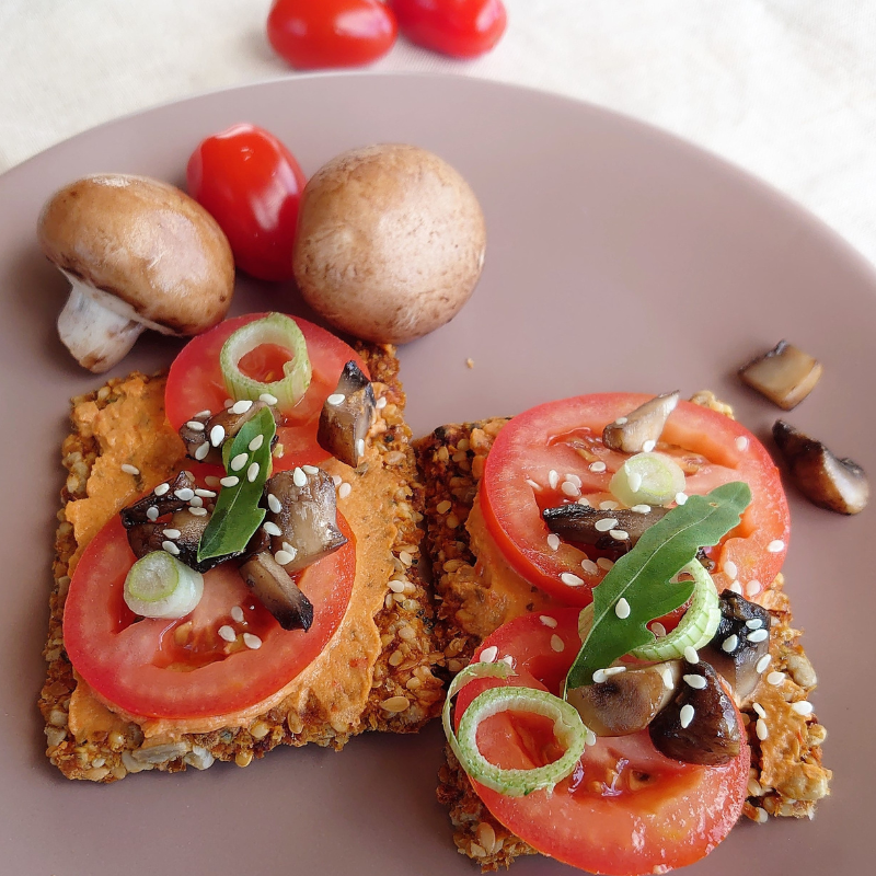 - Ideāli ar hummusu, avokado krēmu vai dārzeņu pastētēm